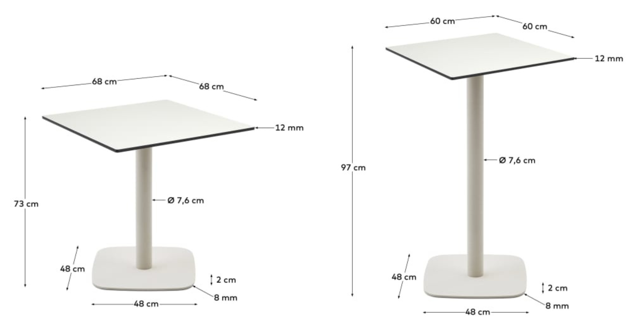 Table Dina with a white base and a white top is an elegant piece of furniture that adds a modern character to any room. Its square top in white and a metal base, also in a white shade, create a harmonious composition that catches the eye with its minimalist design.