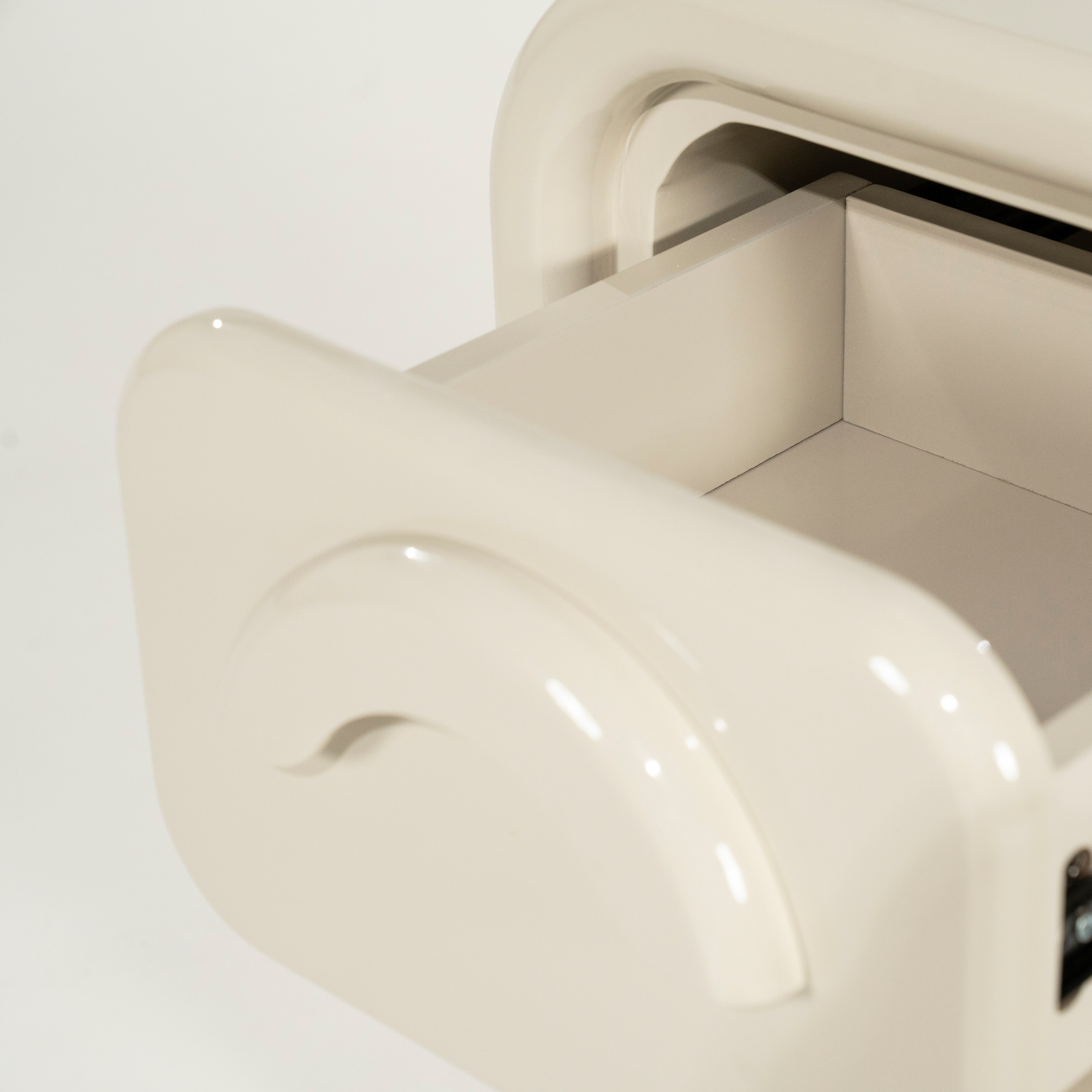 Komoda Gubby to wyjątkowy mebel o nowoczesnym, a zarazem retro charakterze, który zachwyca zaokrąglonymi liniami i eleganckim wykończeniem w wysokim połysku. Dzięki subtelnym, zintegrowanym uchwytom i gładkiej formie prezentuje się niezwykle stylowo, wprowadzając do wnętrza harmonię i lekkość. To idealny wybór dla miłośników designu, którzy cenią prostotę połączoną z funkcjonalnością.