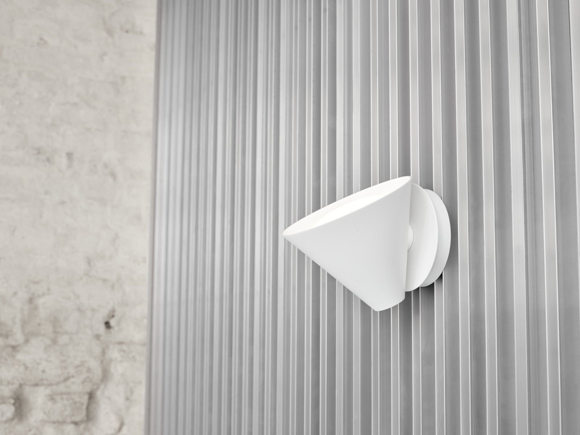 Lampa ścienna Keglen to nowoczesna propozycja zaprojektowana przez studio BIG Ideas we współpracy z Louis Poulsen. Jej charakterystyczny, stożkowy klosz z wbudowanym wyprofilowanym dyfuzorem zapewnia miękkie, nieoślepiające światło. Subtelna, górna szczelina emituje delikatną poświatę ku górze, tworząc nastrojowy efekt. Lampa ścienna może być montowana z kloszem skierowanym w dół lub w górę, co pozwala dopasować oświetlenie do funkcji wnętrza. Dzięki możliwości obrotu klosza o 45° na boki, światło można ukierunkować tam, gdzie jest najbardziej potrzebne.