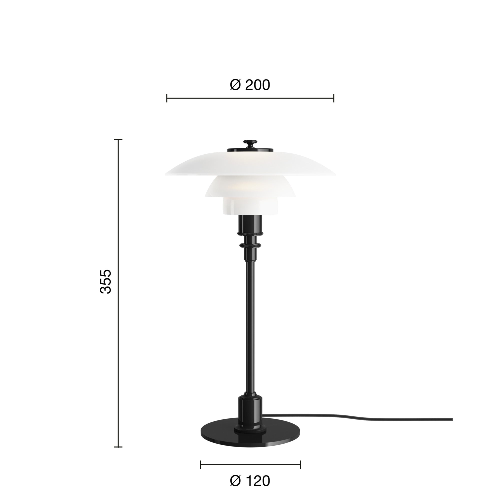 Table lamp PH 2/1 is a classic work by Poul Henningsen, designed based on his famous three-shade system from 1925, which provides completely glare-free light and soft, harmonious illumination. The shades made of three-layer, blown opal glass direct the light mainly downward, creating a pleasant, even glow. With its timeless form and excellent proportions, the table lamp PH 2/1 serves as an elegant accent on a desk, dresser, or nightstand – in both classic and modern interiors.