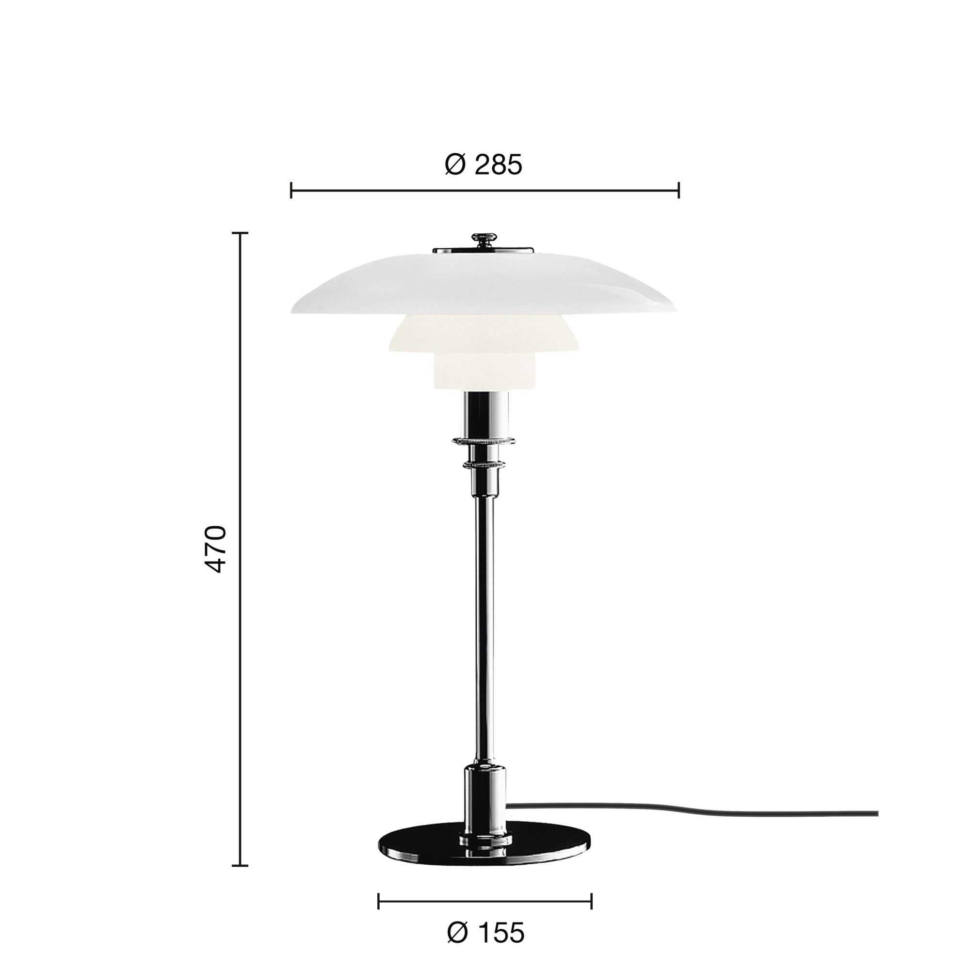 Table lamp PH 3/2 is a timeless classic by Poul Henningsen, designed based on his legendary three-shade system from 1925. Thanks to the three-layer, blown opal glass, the lamp provides soft, even, and glare-free light, making it perfect for both work and relaxation. The upper shade, with a diameter of approximately 30 cm, and the precisely shaped lower shades create a harmonious, geometric form that remains an icon of Danish design to this day. Table lamp PH 3/2 is an elegant addition to the living room, office, bedroom, or library.