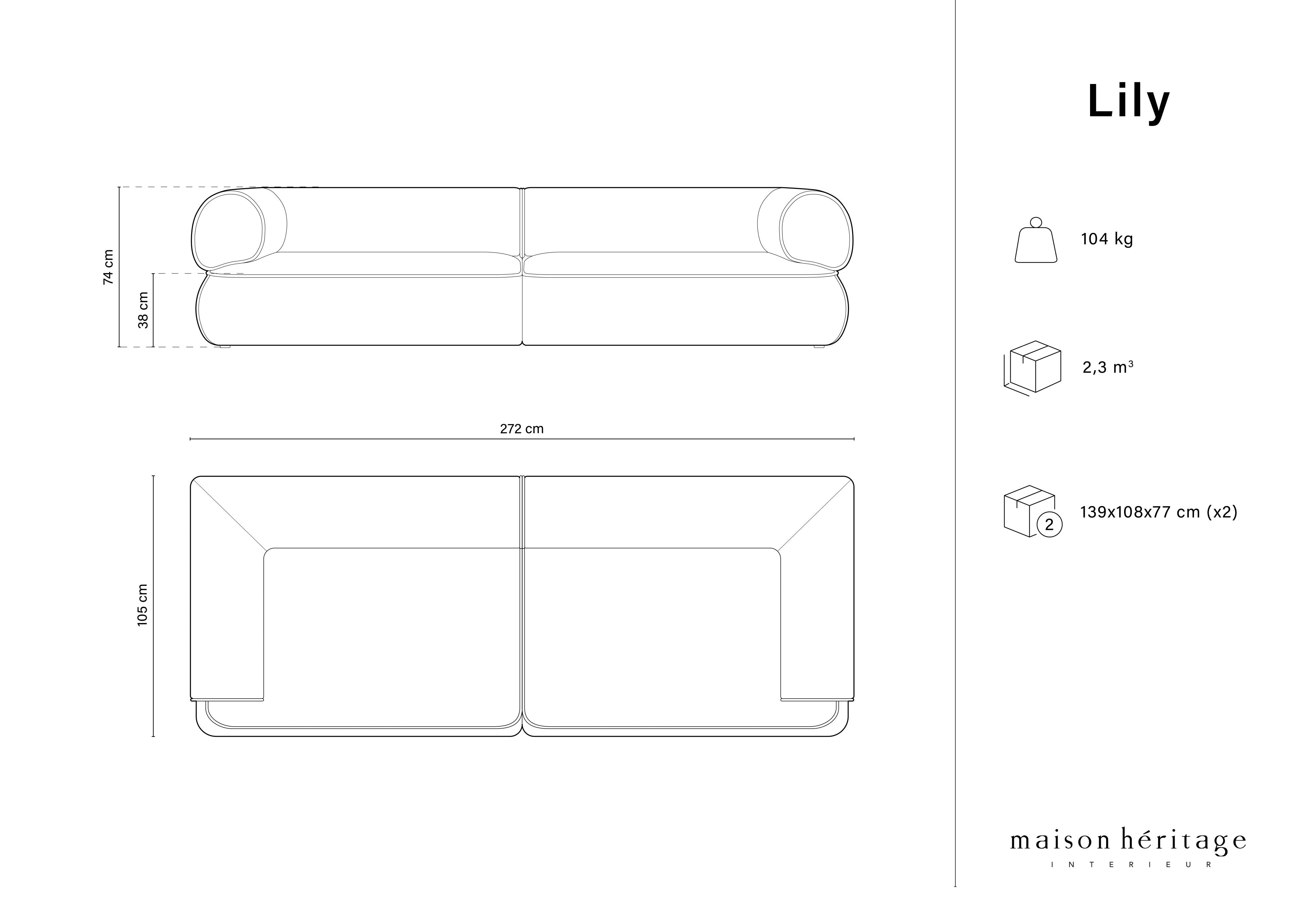 The deep seats are elastic and extremely comfortable. Delicate quilts and stitching emphasize the classic nature of the project. Thanks to the low and spreading figure sofa Lily will introduce a little coziness and warmth into the interior. The collection includes various combinations of sofas and corners, as well as chaiselong and large pouf, thanks to which you can create a unique decor.