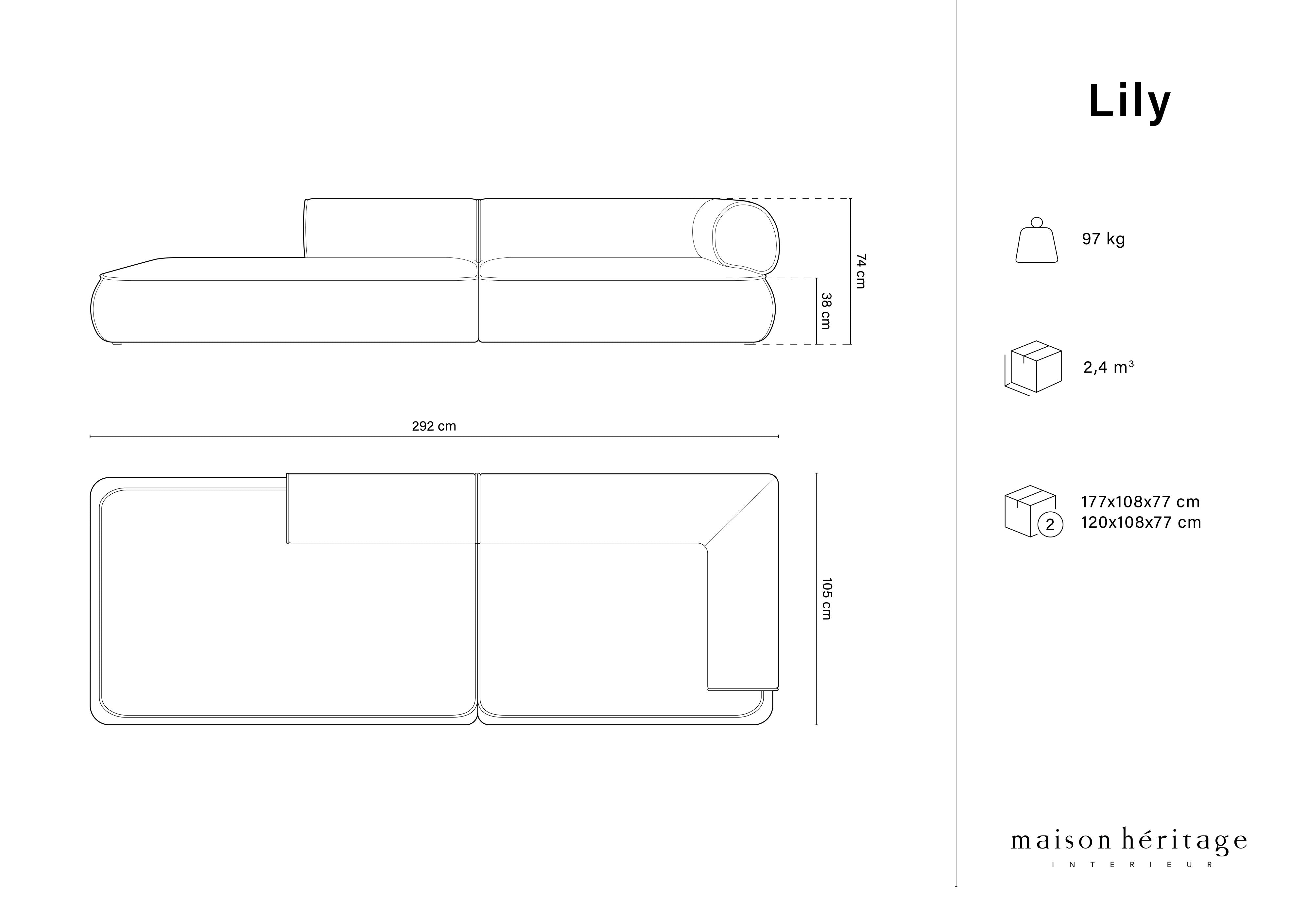 The deep seats are elastic and extremely comfortable. Delicate quilts and stitching emphasize the classic nature of the project. Thanks to the low and spreading figure sofa Lily will introduce a little coziness and warmth into the interior. The collection includes various combinations of sofas and corners, as well as chaiselong and large pouf, thanks to which you can create a unique decor.