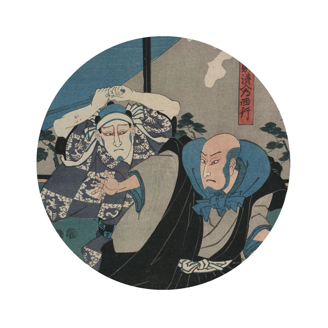 Circular Mural DOTS - ZEN WARRIORS gray with blue