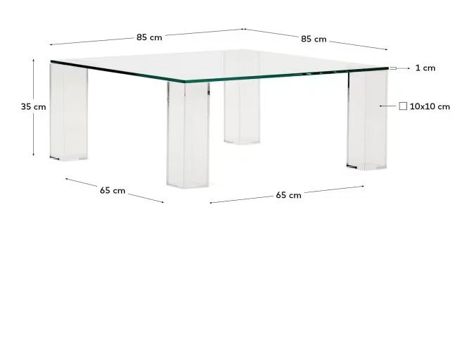 Square coffee table Adularia is a modern accent in transparent tempered glass that brings elegance to any interior. Its innovative design with invisible connections between the top and legs adds lightness and style.