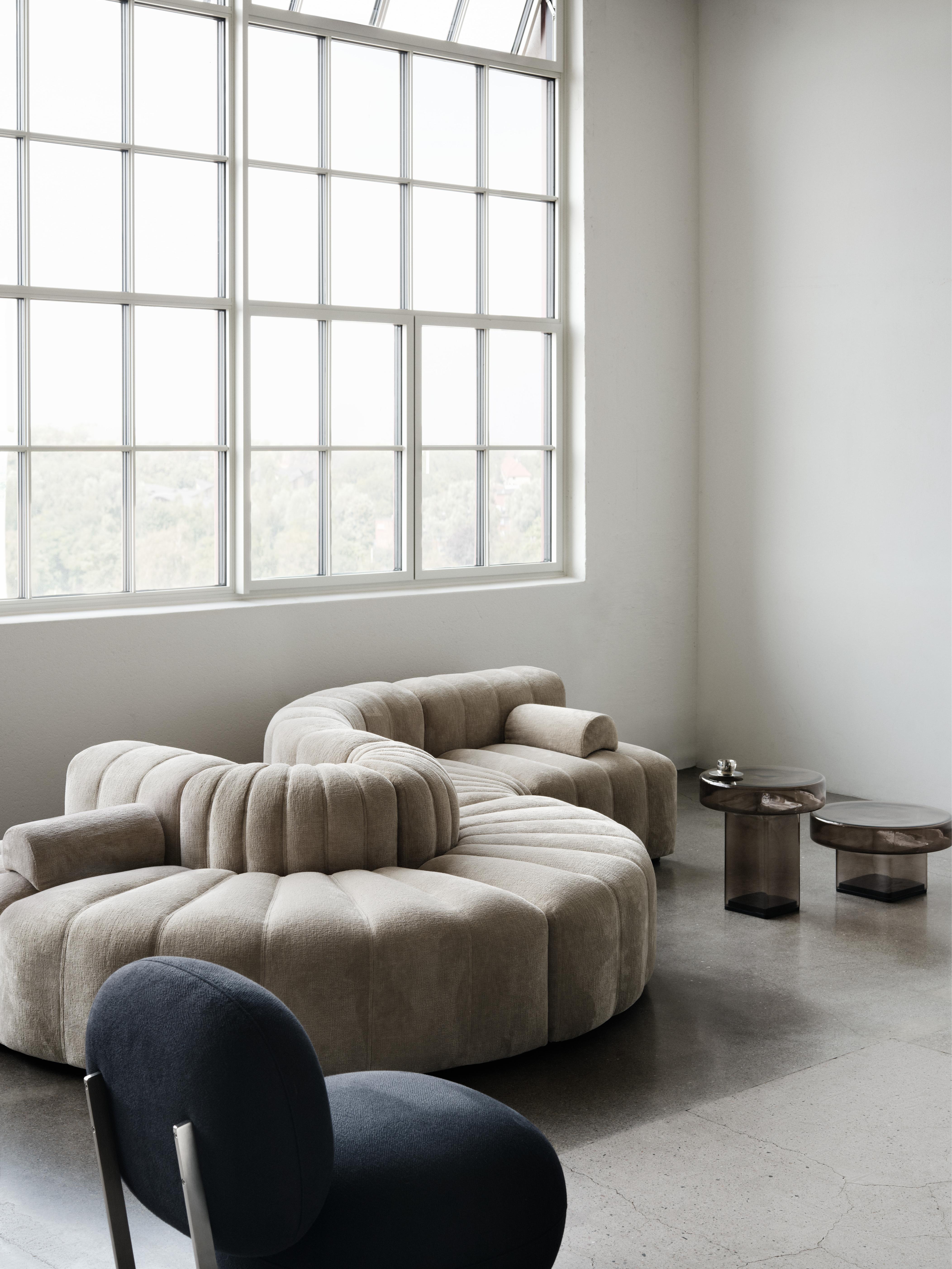 Coffee table Naked is a combination of sculptural form and the delicacy of glass. Its bold, round top rests on a massive, columnar base, creating a daring yet light expression in its construction. Each glass coffee table is made from a single piece of hand-blown glass, making it a unique piece of craftsmanship. The creation process involves shaping molten glass in a special mold, blowing it, tempering it, and precisely cutting it to achieve perfect stability.