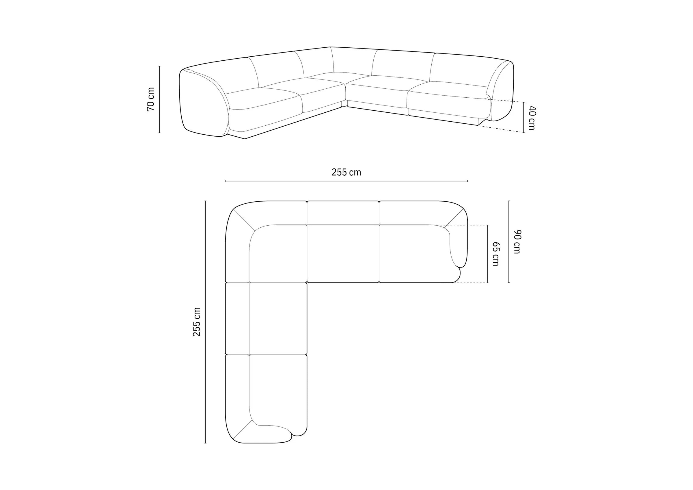 Symmetrical Corner Sofa MILEY in Navy Blue Silky Chenille