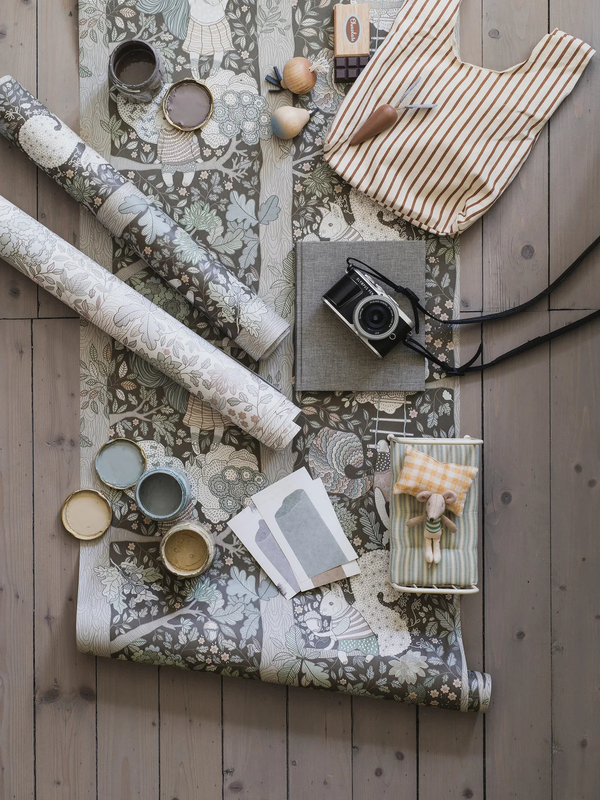 Children's wallpaper with a fairy tale forest theme CHARLIE brown with white