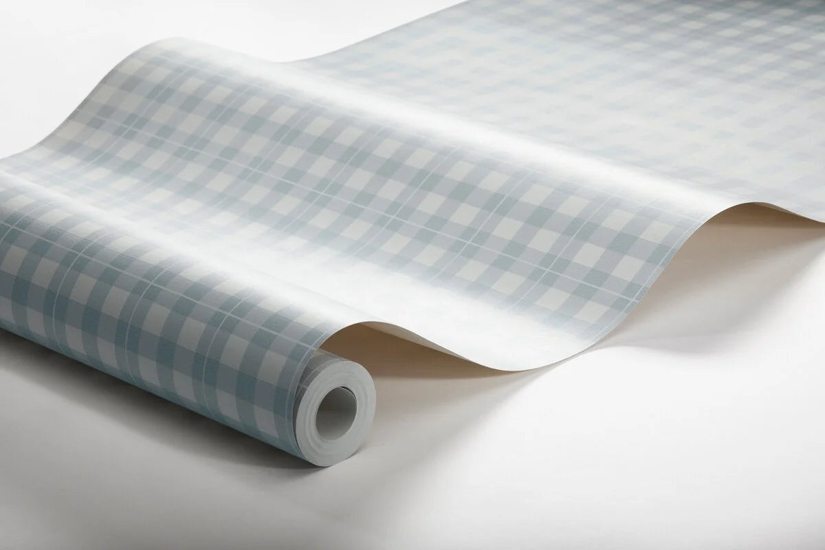 Geometric Pattern Wallpaper in Checkered Design FRIDA Blue with White