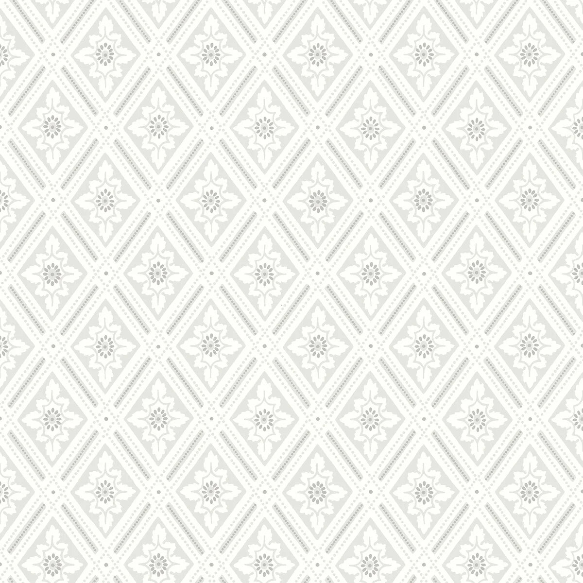 Non-woven paper wallpaper in Hidden Medallion design, broken white