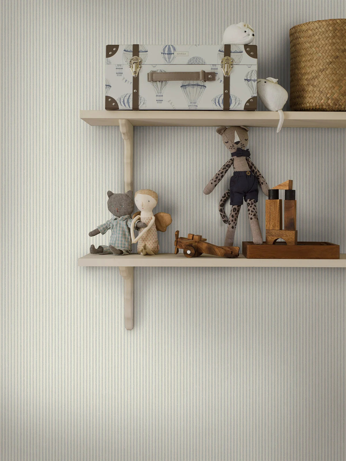 Structural wallpaper imitating striped linen POLKA STRIPE blue with beige