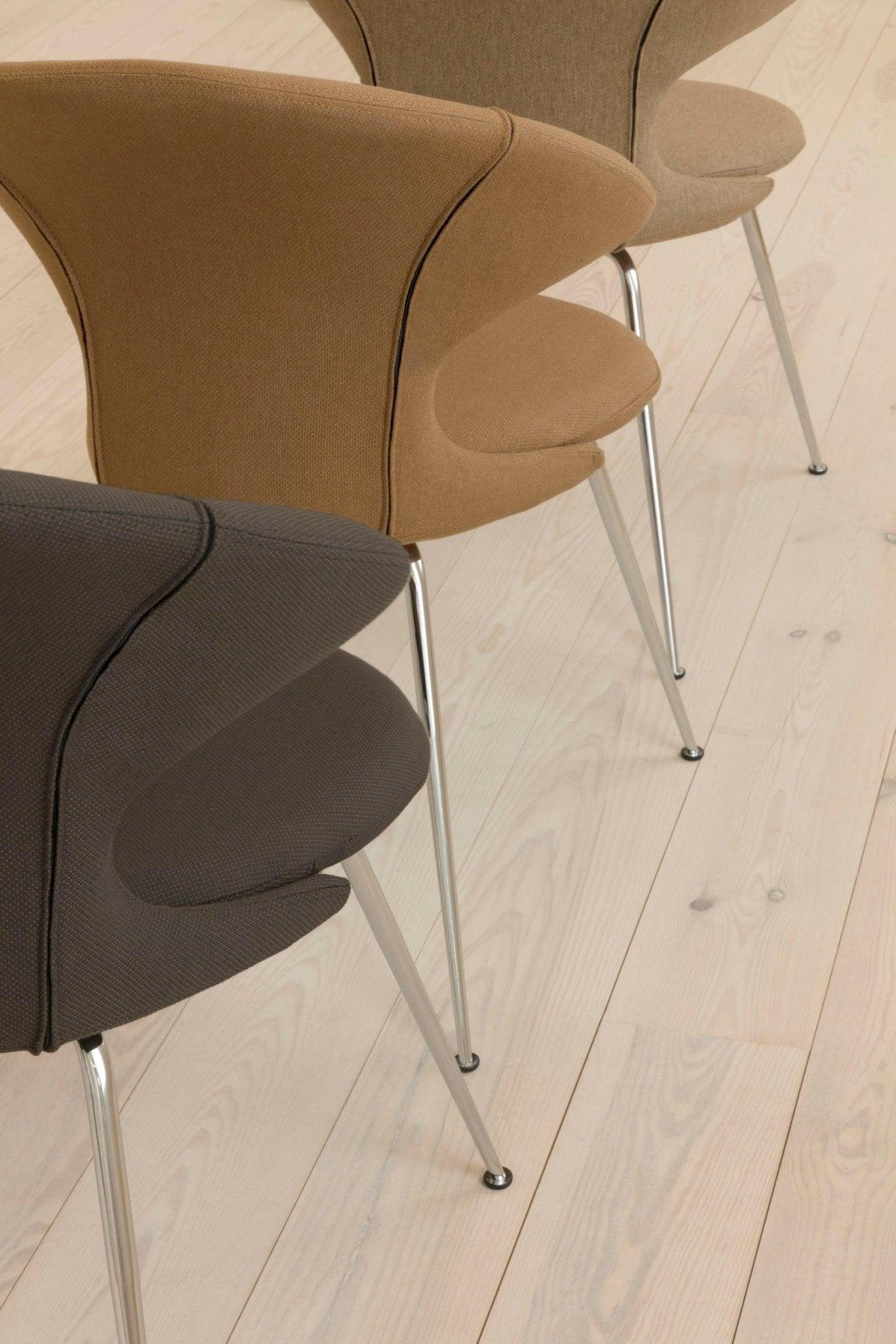 Chair It is available in 17 carefully selected colors of Horizons fabric, which is 100% recycled. In addition, leg options include brass, chrome or black finishes, which allows you to match the chair to different internal styles. This combination of aesthetics, functionality and a balanced approach to materials makes Time Flies a unique and lasting proposition.
