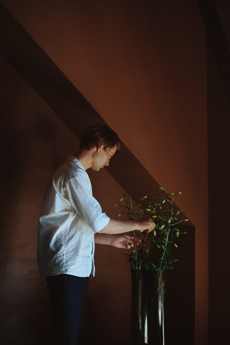 Każdy egzemplarz jest ręcznie dmuchany, co sprawia, że każdy wazon ma unikalny charakter i delikatne różnice w strukturze szkła. Aer doskonale prezentuje się zarówno z kwiatami, jak i jako samodzielny obiekt dekoracyjny, wprowadzając do wnętrza elegancję i harmonię.